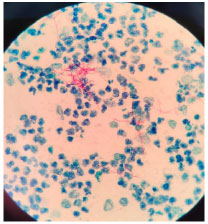 Fig. (3). Nocardia sp. granulation and polymorphonuclear cells observed as dominant on histopathology.