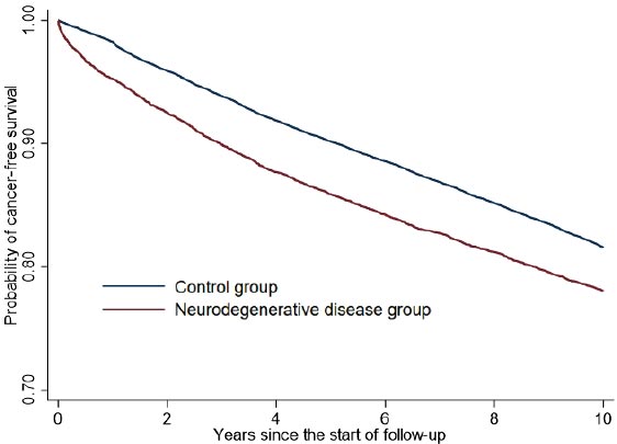 In this study, patients without ND were selected as the control group, and as a result, the incidence of cancer was higher in the ND group during a 10-year follow-up period compared to the control group.