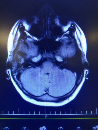 One week ago, he had a headache, vertigo, and intermediate coughs. The frontal and bitemporal headache intensified by head bending, just a one-time fever before admission. He received Co-amoxicalve and azithromycin in the out-patient. There was no pain relief from using the drugs and due to the headache worsening and vomiting, he was taken to the clinic for serum therapy.